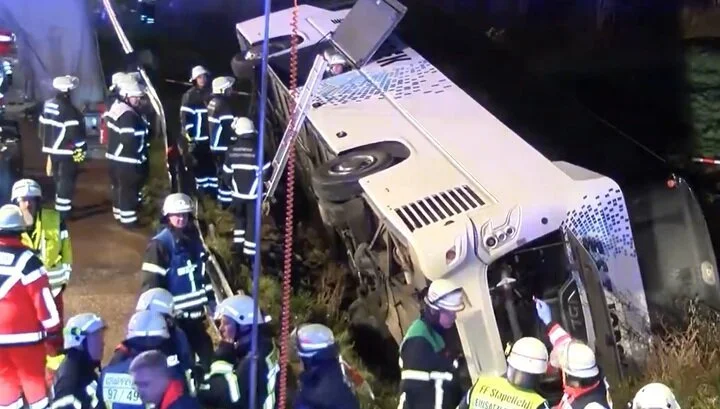Туристический автобус в Германии вылетел с автострады В ДТП пострадали более тридцати человек, у всех сравнительно легкие травмы. Новости 51 351