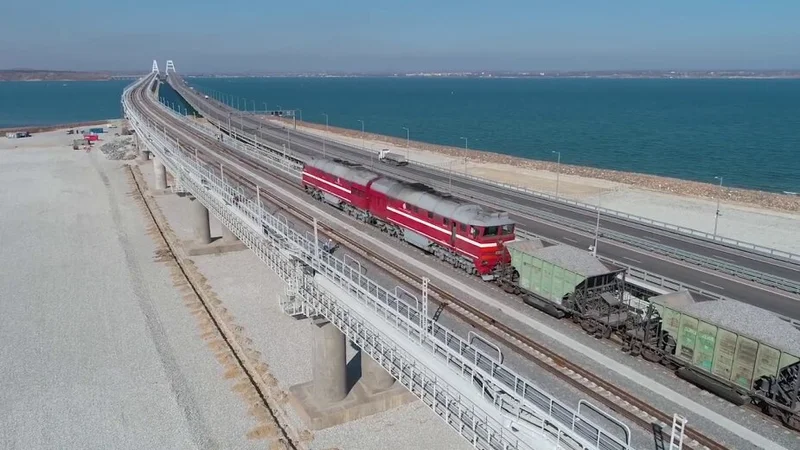 Железнодорожная часть Крымского моста проходит испытания По путям были запущены тяжелые технические составы, вес каждого составляет 2500 тонн. Новости 17 527
