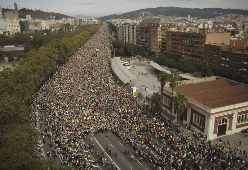 В Барселоне более полумиллиона человек вышли на всеобщую забастовку Людьми заполнен весь центр города. Блокированы транспортные магистрали, закрыты некоторые станции метро. Новости 34 469