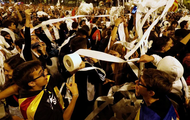 Туалетная бумага стала одним из символов протестов в Барселоне Барселона третий день продолжает гореть в огне. Новости 35 443