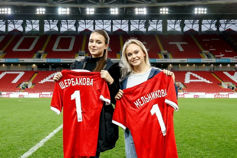 "Спартак" вручил Щербаковой и Мельниковой именные футболки Спортсменки посетили домашний матч красно-белых. Спорт 16 325