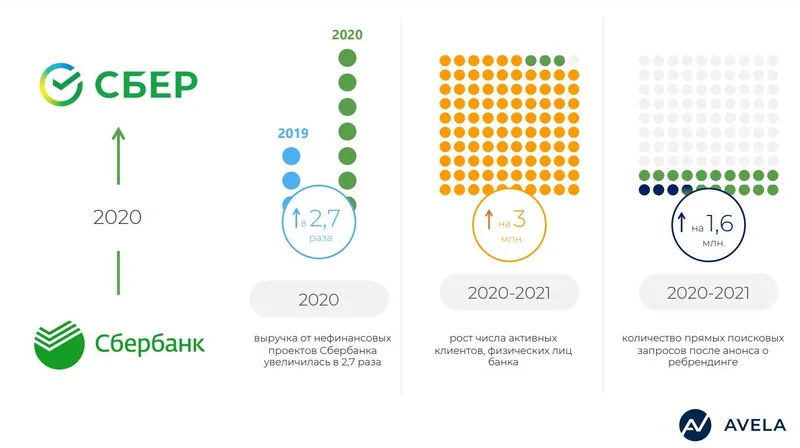 Данные по ребрендингу Сбербанка Источник фото: ГК AVELA