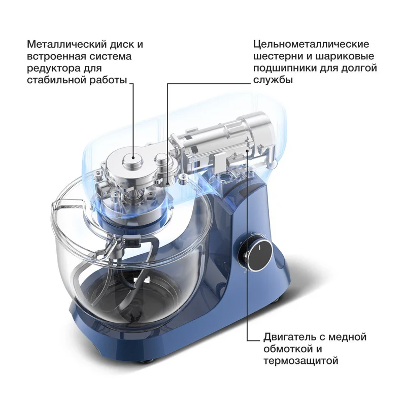 - Максимальная загрузка: 1,3 кг для теста