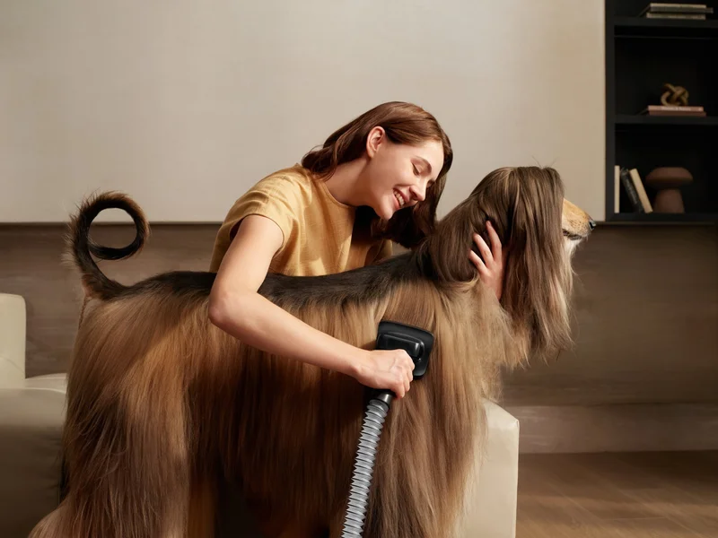 Вертикальный пылесос для дамы с собачкой