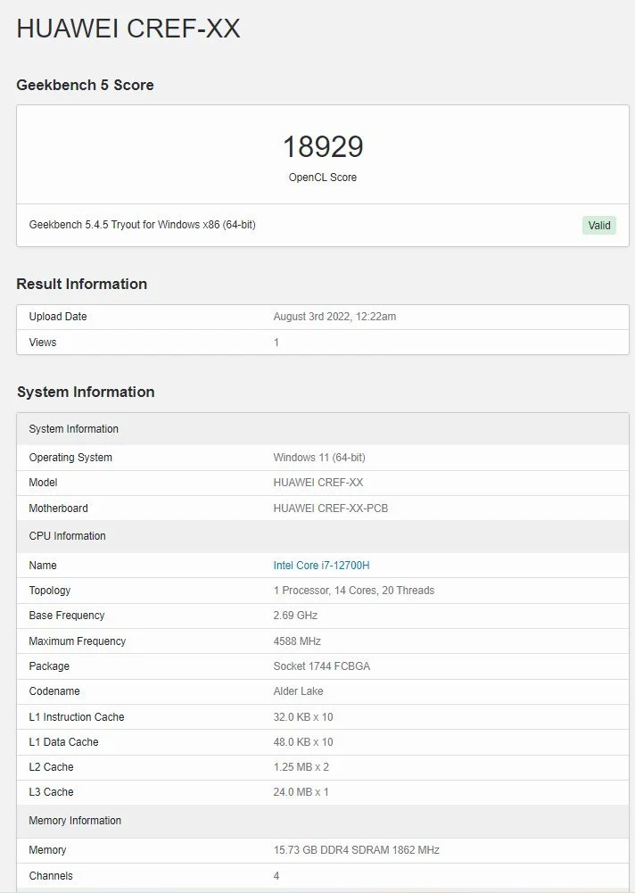 В распоряжении редакции была модель MateBook D16 RLEF-X с процессором Core i7-12700H: