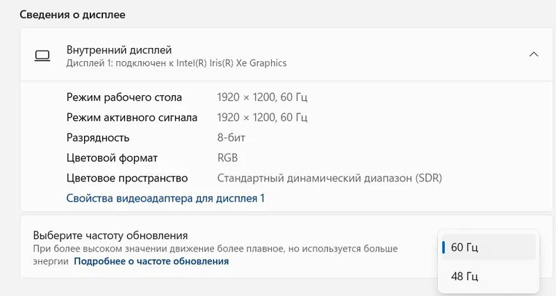 1 920 × 1 200 пикселей, 142 ppi, 300 нит, 100% sRGB; - Операционная система — Windows 11 Home 64 бит;