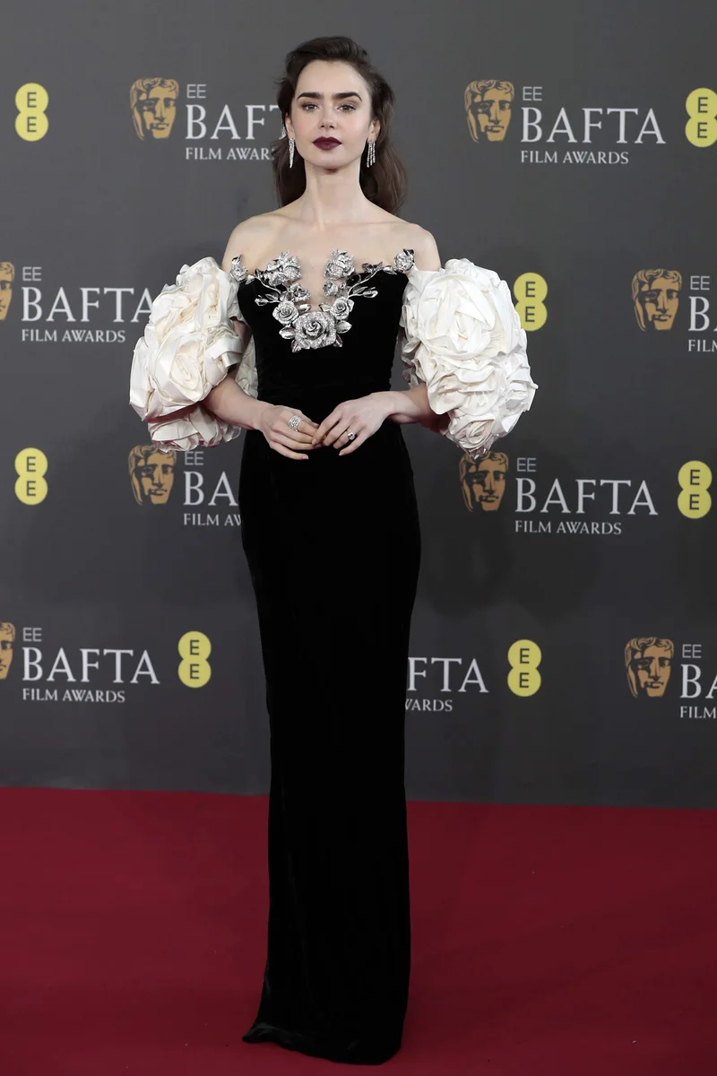 Лили Коллинз на церемонии вручения кинопремии EE BAFTA Film Awards 2024 в Королевском фестивальном зале 18 февраля 2024 года в Лондоне, Англия. Источник фото: John Phillips/Getty Images