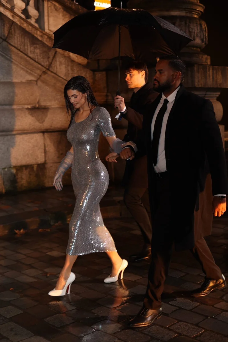 В заключительный день Недели моды заокеанская гостья посетила показ Maison Margiela в сопровождении сестры Ким и матери Крис. Основательница Kylie Cosmetics воплотила «стиль русалки» в платье серого льда с блёстками, создававшем иллюзию чешуи. При этом, Дженнер воспользовалась теорией «неправильной обуви» и надела белые лодочки с закруглённым носком. Неожиданное сочетание сделало дело - туфли сильно контрастировали с нейтральным платьем и привлекали внимание.