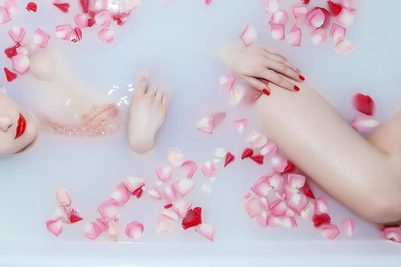 Теперь перейдем к ванне. Наполните её теплой водой и добавьте пену, соль или эфирные масла. Для особого удовольствия попробуйте этот рецепт соли для ванны с розой и молоком: смешайте 1 стакан английской соли, 1/2 стакана пищевой соды, 1/4 стакана сухого молока, 1/4 стакана сушеных розовых лепестков и 10–15 капель эфирного масла розы. Эта смесь сделает вашу кожу мягкой и гладкой, а аромат розы подарит ощущение спокойствия.