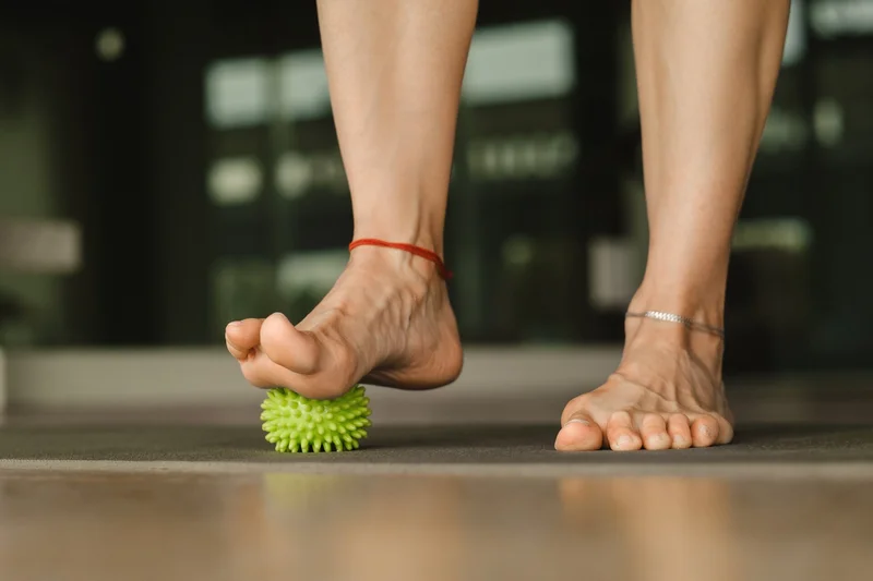 Массаж стоп с помощью мячика.