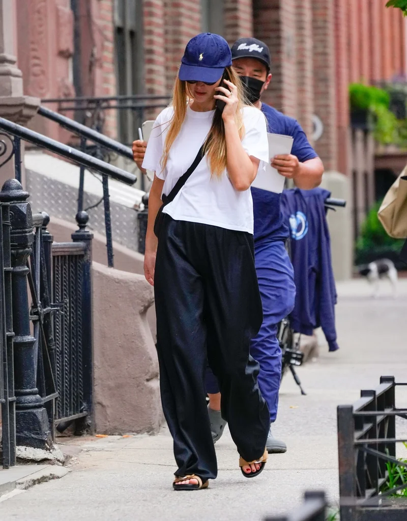 Модель Кендалл Дженер – мастер «умного кэжуала» и часто создаёт образы с классическим блейзером. Этот офисный мастхэв есть почти у всех. Отказываясь от традиционной двойки, она часто надевает пиджак в паре с микрошортами или юбкой и сочетает с белой рубашкой оверсайз. А аксессуары в виде «папиной» кепки и кожаных ботинок связывают её с повседневностью. А кроме того, не забывает о структурированной кожаной сумке. «Классику» в виде костюмов можно присмотреть у TOPTOP, All we need, Brusnika, LIME, Present & Simple, GJ, Charuel и др.