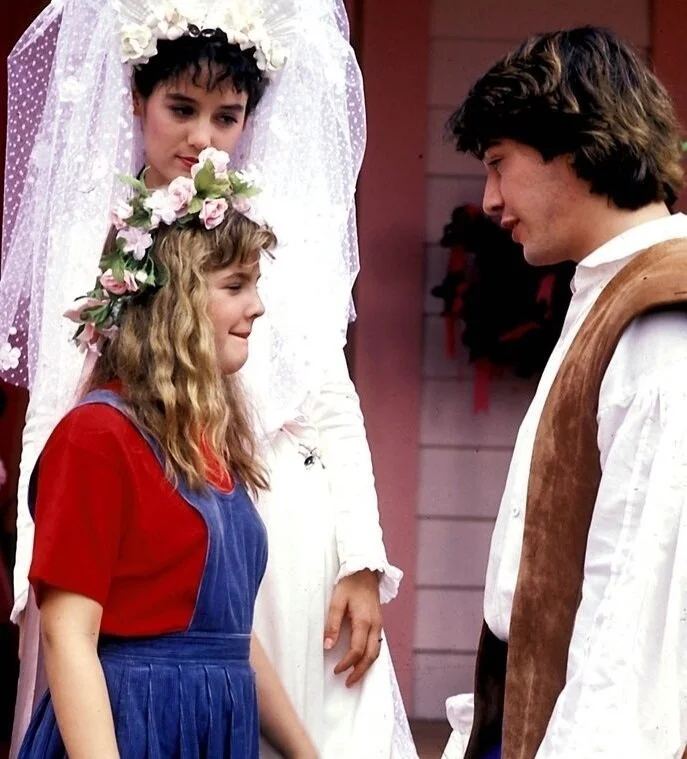 Дрю было всего 11 лет, когда на съёмках мелодрамы-фэнтези «Путешествие в сказку» (1986) она встретила 22-летнего Киану. Работа над картиной закончилась, а эти двое продолжили дружить. И Ривз однажды произвёл на юную Бэрримор неизгладимое впечатление. «Можем мы с тобой окунуться в воспоминания?», - спросила Дрю у Киану, ставшего её гостем на телепрограмме The Drew Barrymore Show.