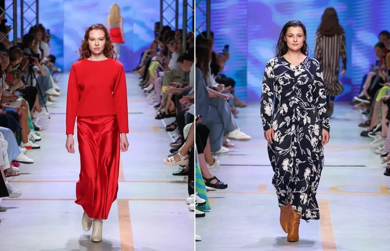 Тем же, кто не хочет выпадать из "взрослой" реальности, скорее всего, подойдут модели этого бренда из Ростова-на-Дону. Коллекция дышит женственностью и элегантностью в лучшем смысле этого слова. Удлинённые силуэты благодаря струящимся тканям, таким как шёлк, вискоза и др., оставляли впечатление текучести. Именно стихией воды и вдохновлялись дизайнеры. В коллекции много голубого, синего и красного, как акцента, разбавляющего спокойное и слегка волнующееся в случае с Industry «житейское море». Фасоны: платья-рубашки, платья-комбинации и трапеции. Для любительниц стилевого минимализма, естественности и удобства.