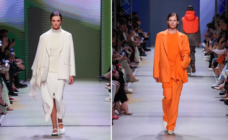 Осенняя коллекция – много пальто, брючных костюмов, плащей и курток. Из материалов: деним, кожа, фланель, шерсть. Подходит как для похода в офис, так и на прогулки. Ярко, современно, практично. Цвета: синий, оранжевый, красный, зелёный и чёрный. Стоит присмотреться тем, кто уже ищет, чем пополнить свой гардероб на предстоящий прохладный сезон.