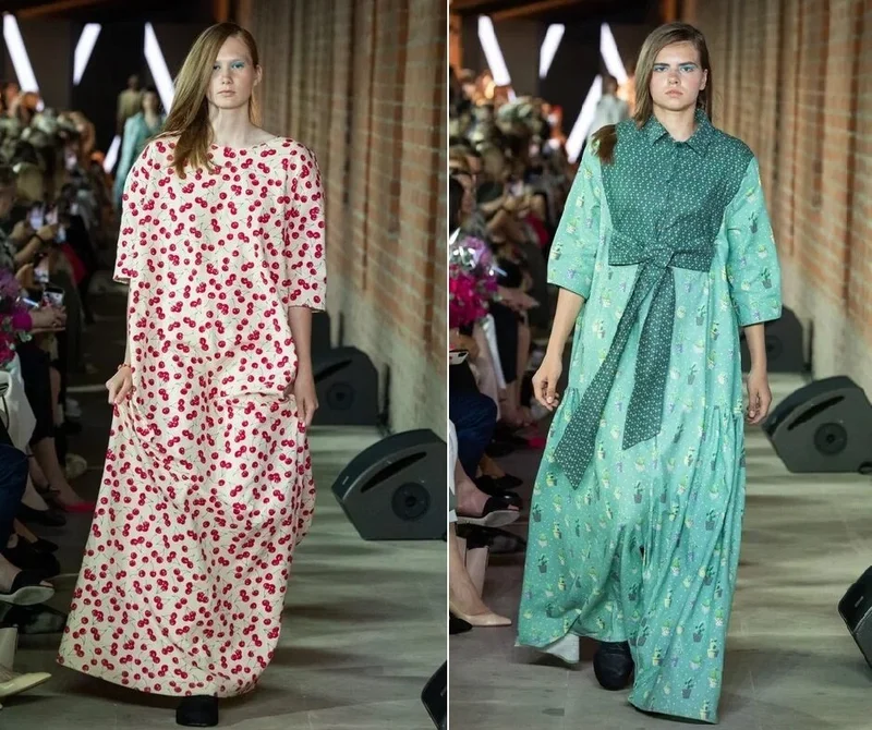 Выбранные принты отличала традиционная для русских народных промыслов задорность, какую придаёт обычно мелкий цветочный рисунок. Были среди них и хиты последних лет – крупные изображения животных и фруктов: лимонов, вишни, перцев в др.