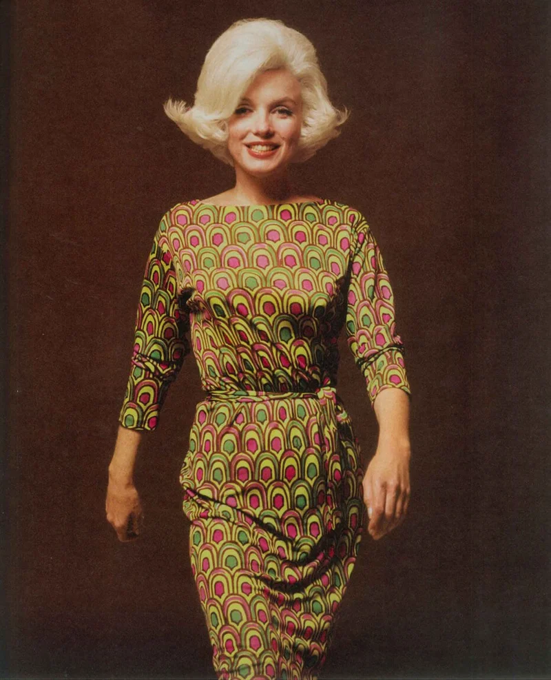 Разноцветное платье Pucci из шёлкового трикотажа. В нём знаменитость позировала для Vogue в 1962 году. Примечательно, что эта фотосессия была проведена за шесть недель до того, как Монро не стало. За три дня фотограф Берт Стерн сделал 2500 кадров с кинодивой. Их он позднее напечатал отдельной книгой.