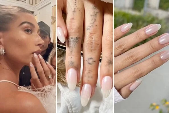 Хейли Бибер с маникюром "глазурь на пончике", 2022 г. Источник фото: соцсети.
