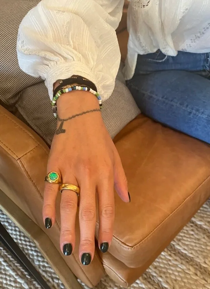 В сезон, когда листвы остаётся всё меньше и меньше, специалисты по нейл-арту советуют сомневающимся в выборе базового цвета, остановить взгляд на оттенке еловой чащи (hunter green). С одной стороны, он подчеркнёт верность классике, с другой добавит образу современности. Двух слоёв будет достаточно, чтобы ноготки приобрели устойчивый блеск, а их небольшая длина задаст рабочее настроение.