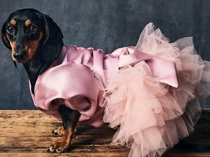 В конце прошлого года итальянский модный дом выпустил свою первую коллекцию для домашних животных. В неё вошли 14 предметов одежды и аксессуаров. В том числе байкерские куртки, тренчи, толстовки, футболки и бейсболки. Всё как у людей. И даже наборы поводков, ошейников и керамических мисок от Moschino выдержаны в едином стиле. Ну, а для торжественных случаев модный дом предлагает одежду на выход. Как, например, это бальное платье из розового сатина, к которому подойдёт ошейник с названием бренда, написанным золотыми буквами. Цена на товары колеблется от $107 до $506.