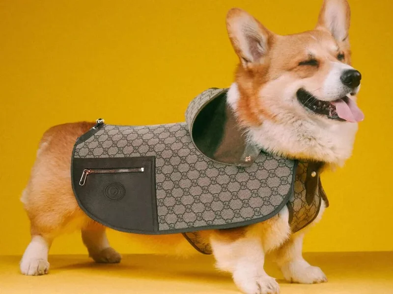 Теперь домашние питомцы тоже могут облачиться в Gucci. Итальянский люксовый дом в начале этого лета выпустил Gucci Pet Collection, куда вошли одежда, аксессуары и домашние приспособления для четырёхлапых любителей моды. Так, собаки, кошки и другие животные могут носить кожаные ошейники, шлейки и поводки стоимостью от $230 до $600, украшенные логотипом GG, красно-зелёным репсом и другими элементами фирменного дизайна. В коллекцию также вошли кожаные чехлы для авиаперелётов и держатели для мешков с мусором (от $220 до $460), которые можно сочетать по цвету с поводками. Для домашнего комфорта любимцев (от $565 до $7,500) модный дом предложил миниатюрные кушетки, установки со съёмными керамическими мисками с крышками из латуни и коврики для кормления, а также дорожные сумки для переноски четвероногих друзей.