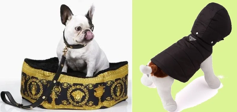 Интерес к данной нише товаров проявляют и другие производители. Так, например, Yves Saint Laurent выпустил миски для кормления с принтом под мрамор, Thom Browne предложил полосатые поводки, Prada – элегантные пальто, а Versace некоторое время назад поразил воображение клиентов вельветовыми кроватями для собак и кошек в характерной барочной расцветке. Другие модные дома, такие как Valentino, пока не задумывались над производством товаров для четвероногих друзей, но тему животных регулярно интегрируют в коллекции для людей. В октябре 2020-го в продаже появились сумки от Valentino с портретами собак и кошек художника Риккардо Кузимано.