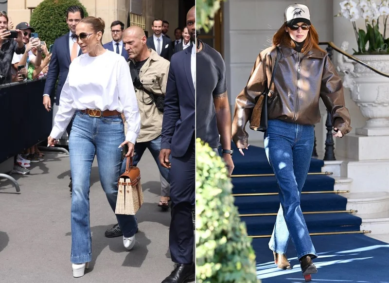 Как доказывают знаменитости, есть много способов заставить джинсы-клёш «работать», подобрав к ним соответствующий верх и обувь. Например, Лопес сочетала их с белой блузкой и туфлями на платформе, когда вышла в очередной раз на улицу. Тогда как Дженнер прошлась перед фотографами в таких джинсах, дополненных бомбером, бейсболкой и ботильонами, подчеркнувшими её расслабленный образ.