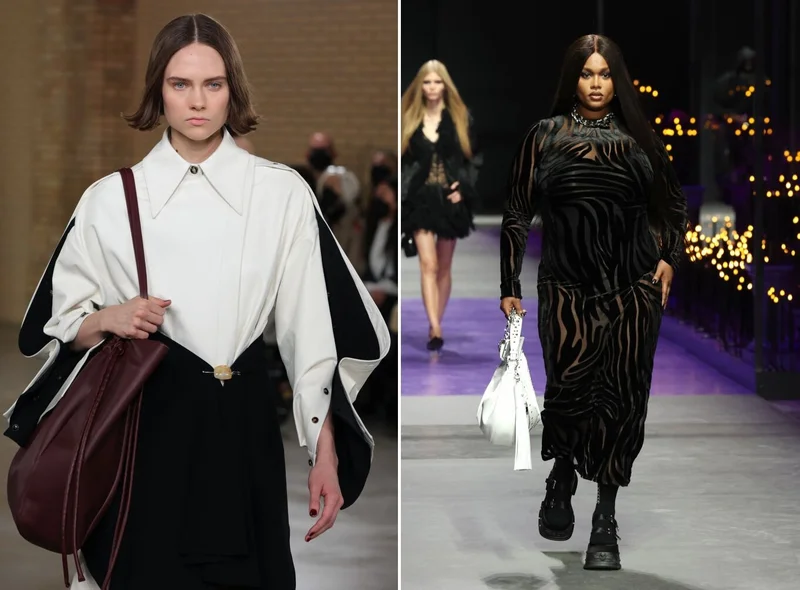 Сумки оверсайз в коллекциях Proenza Schouler и Versace сезона "весна 2023". Источник фото: Arturo Holmes; Vittorio Zunino Celotto/Getty Images.
