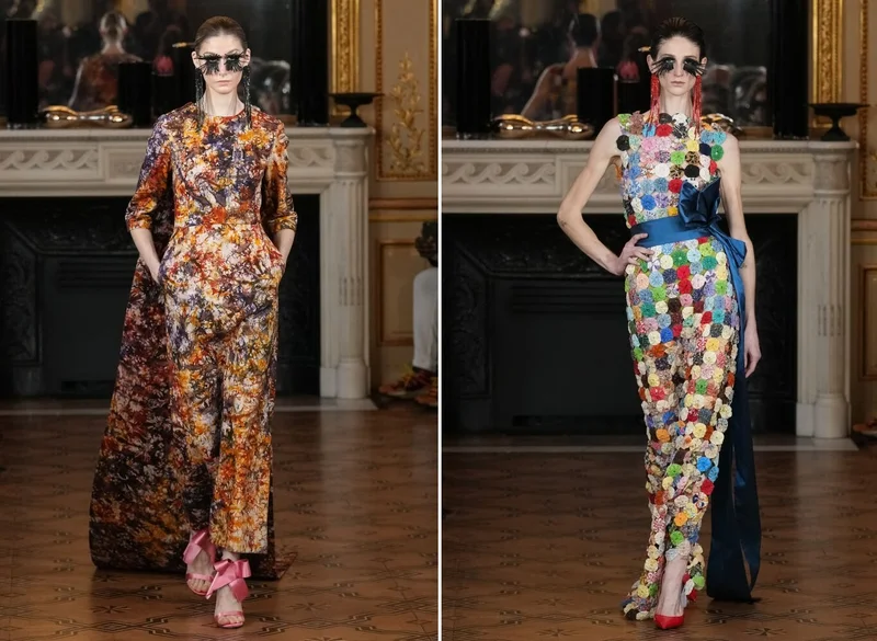 Модели Айисси, как всегда, были очень колоритны: наполнены яркими цветами и замысловатыми принтами, с типичными элементами африканского кроя, такими как накидки с бахромой, длинные пальто-кейпы, юбки с драпировками и др.