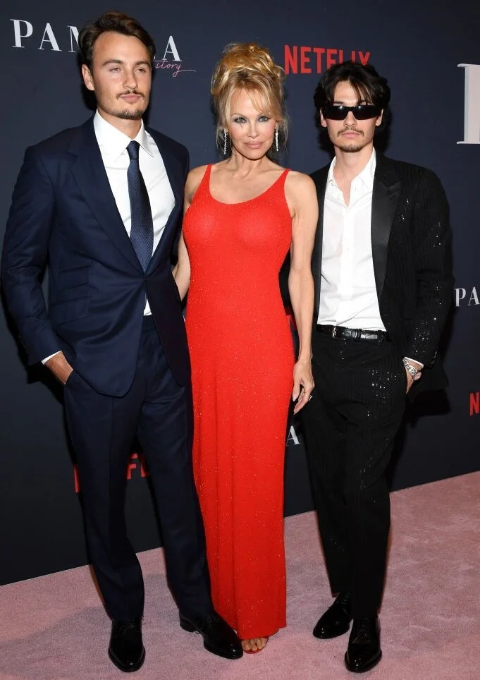 На красной дорожке к Андерсон присоединились сыновья – 26-летний Брэндон и 25-летний Дилан, которых она родила в браке с музыкантом, барабанщиком группы Mötley Crüe Томми Ли.