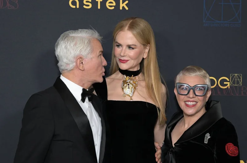 Николь Кидман продемонстрировала оригинальный стиль на церемонии вручения премий Гильдии режиссёров Америки. Актриса позировала на дорожке с режиссёром Базом Лурманом и его женой, дизайнером по костюмам Кэтрин Мартин. Вместе пара работала над такими известными фильмами как «Мулен Руж» (2001), в котором сыграла Кидман, «Великий Гэтсби» (2013), «Элвис» (2022) и др.