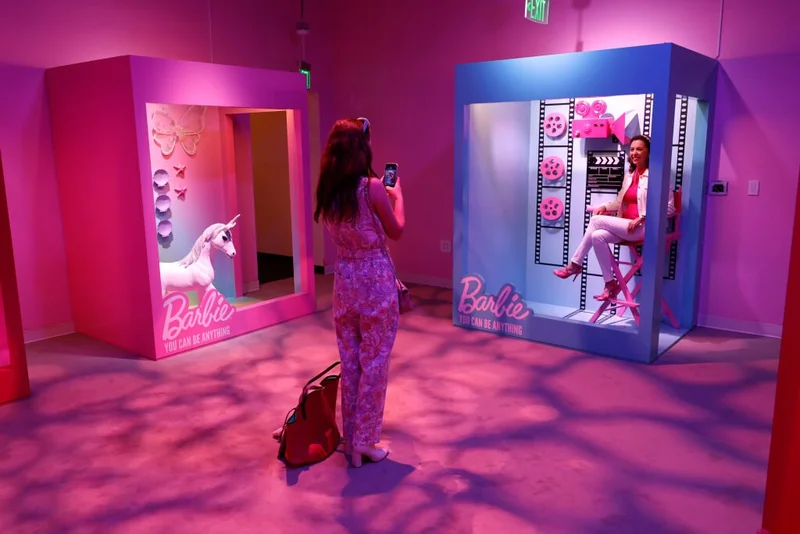 Интерактивное пространство, занявшее 20 тысяч квадратных метров, позволяет прогуляться по культовому кукольному городку. Завернуть в кинотеатр, где показывают классический контент Барби; посидеть в её автобусе для кэмпинга; пройтись по розовой ковровой дорожке и сделать снимки внутри упаковочных коробок; заглянуть в телестудию; посетить парикмахерскую, предлагающую кардинальное преображение.