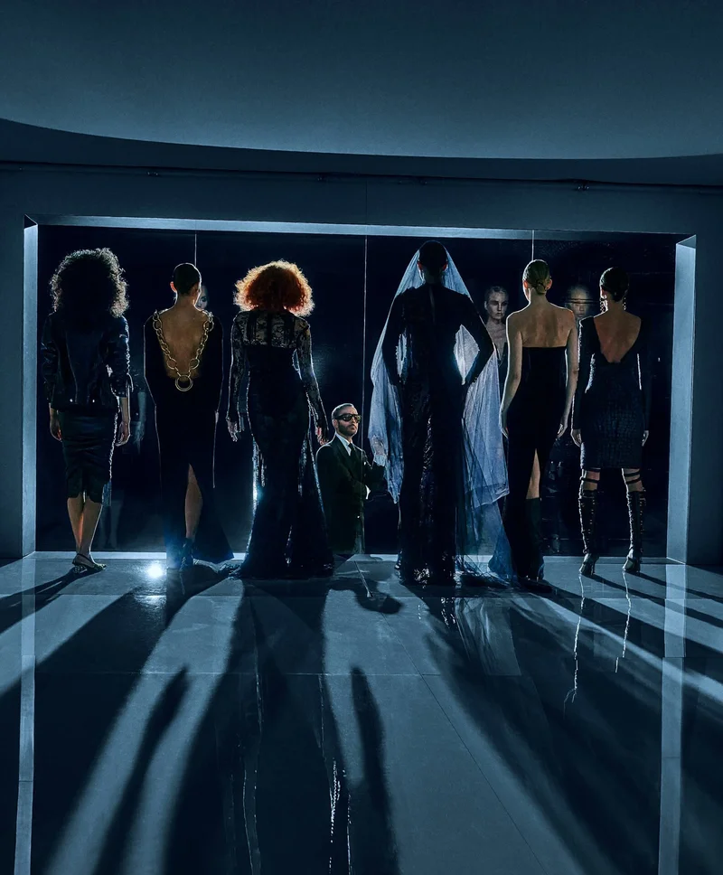В рекламной кампании, над которой работал фотограф Стивен Кляйн, такие модели, как Джоан Смоллс, Карен Элсон и Эмбер Валлетта позируют в стеклянных коробках тогда, как Форд в привычном безукоризненном костюме проходит мимо. Манекенщицы, многие из которых работали с модельером с основания бренда в 2010-м году, выразили не только ностальгию по ушедшим годам и совместной работе с маэстро. Коллекция Tom Ford сезона «осень/зима 2023/2024» включила переосмысленные версии некоторых, знаменитых, образов, представленных им за прошедшие 13 лет.