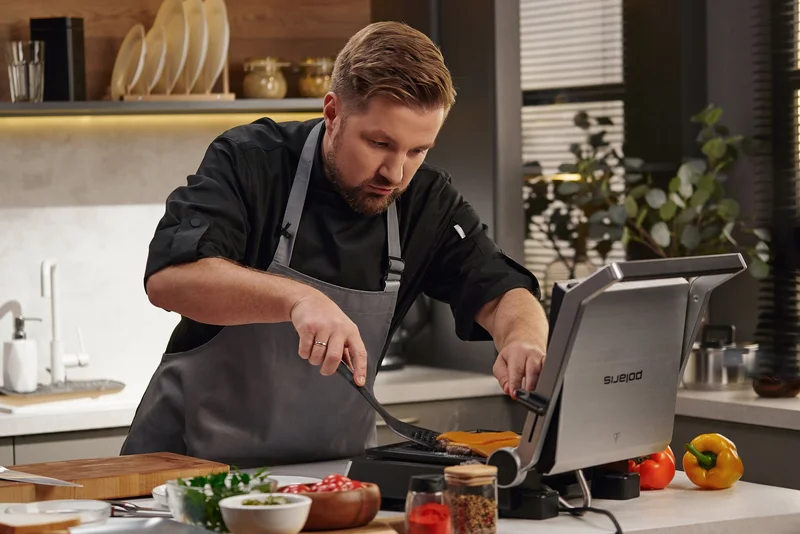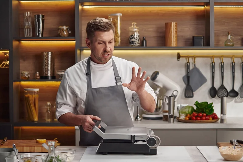 «Гриль можно развернуть на 180⁰ – на разных панелях можно готовить разные продукты. При этом на каждой части температура может выставляться индивидуально. Это очень удобно, если вы обжариваете, например, рыбу и мясо. В этом случае вкусы не смешиваются», – отмечает шеф-повар Артем Лосев.