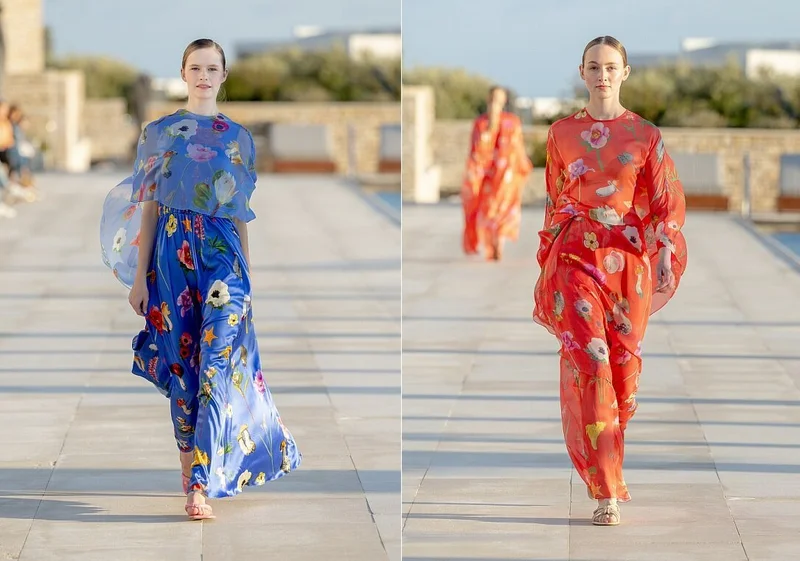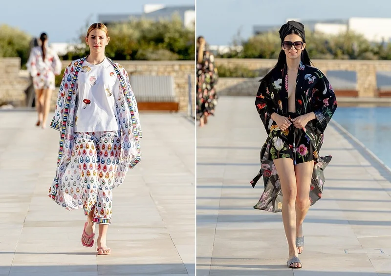 Лето 2023 модельер предлагает провести легко, беззаботно, расслабленно в платьях, кафтанах, блузах, футболках, шортах и костюмах пижамного типа из струящихся тканей. Конечно, в предметах одежды царит фирменный принт бренда – разноцветные капли. Но не только он. Есть модели, в которых Юлия «поиграла» с логотипом, а также те, в которых визуально напоминается о таких традиционных признаках лета, как цветы, грибы, туфельки и морские звёзды.