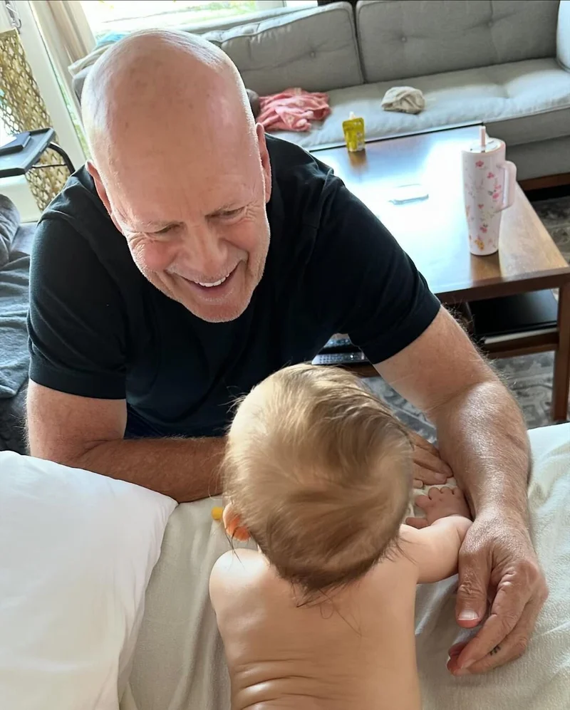 19 марта, в честь дня рождения Брюса Уиллиса, у которого была диагностирована лобно-височная деменция, Деми Мур выложила в социальные сети фотографии с бывшим супругом. На первом снимке они мило беседуют, на втором Брюс играет со своей маленькой внучкой Луэллой, первым ребенком его дочери Румер, а на третьем – старое фото из семейной коллекции, где счастливый молодой отец Брюс Уиллис обнимает троих своих дочерей.