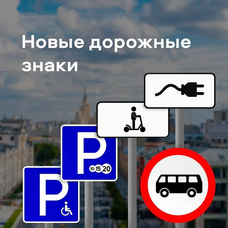 Кроме того, постановлением правительства РФ утверждены два новых дорожных знака: зарядка для электромобилей и запрет движения автобусов (знак не запрещает движение автобусов, следующих по маршрутам общественного транспорта, и школьных автобусов).