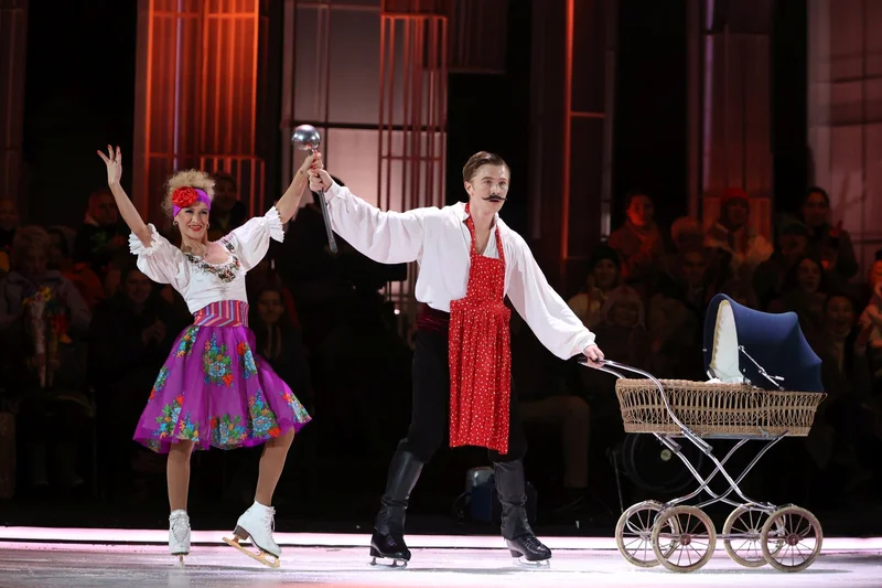 Семейная сценка с половником и детской коляской, костры на льду, травма и слезы. Что ждет зрителей в седьмом выпуске ледового шоу на Первом канале.