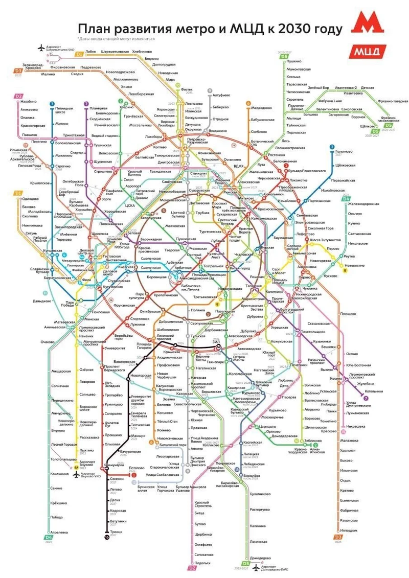 Опубликована новая перспективная карта московского метрополитена и МЦД до 2030 года