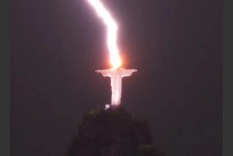 Молния ударила в статую Иисуса Христа, находящуюся на одном из холмов бразильского города Рио-де-Жанейро.
