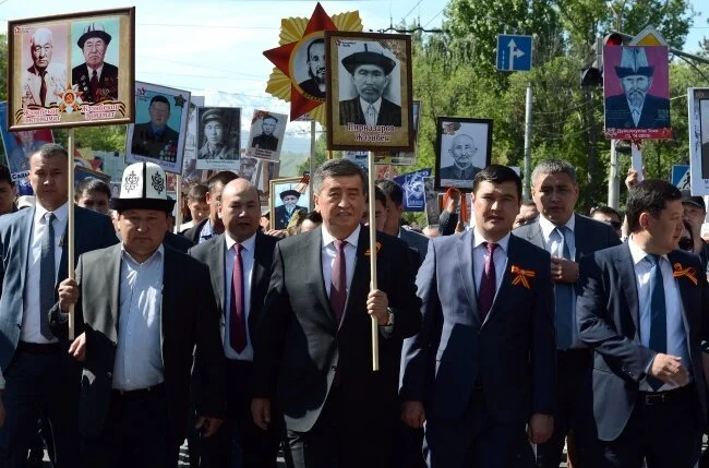 Президент Киргизии принимает участие в шествии «Бессмертного полка» Президент Киргизии Сооронбай Жээнбеков сегодня, 9 мая, принимает участие в шествии «Бессмертного полка» в Бишкеке.