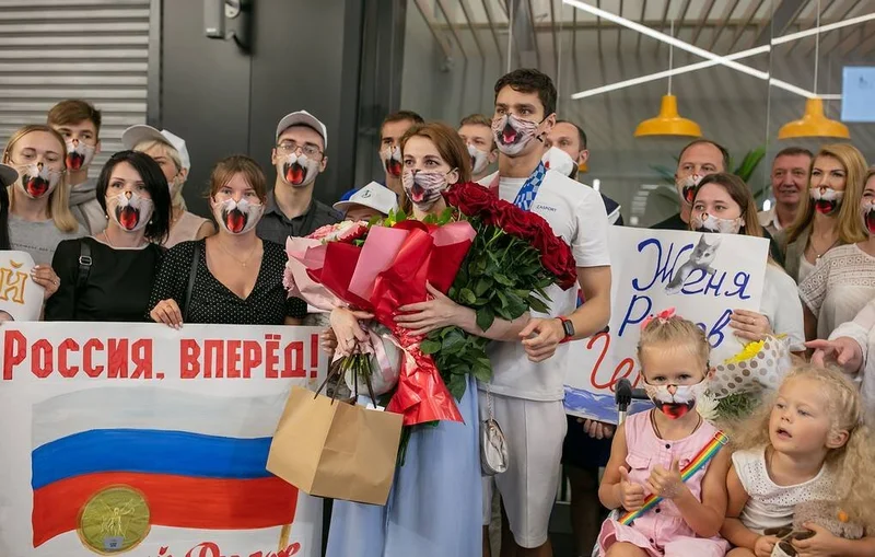 Двукратного олимпийского чемпиона Евгения Рылова болельщики встретили в аэропорту в масках с котиками Маску с котиком российский пловец хотел надеть на церемонию награждения, однако ему не разрешили. Болельщики решили поддержать спортсмена необычным флешмобом. Новости 50 041
