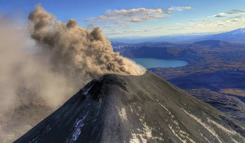 На Камчатке выбросил столб пепла вулкан Карымский Высота пеплового столба составила до 2 километров, а шлейф от него распространился на 55 км в сторону Кроноцкого залива. Новости 51 486