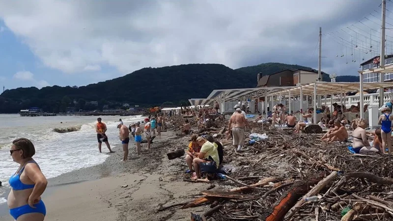 Черноморское побережье постепенно приходит в себя после удара стихии Вся территория пляжа была завалена мусором. В уборке принимали участие волонтеры. Новости 27 741