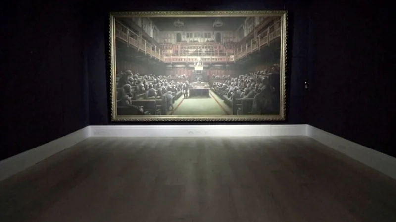 Работа Бэнкси выставлена на торги Художник, лица которого никто не видел, выставил на аукцион полотно Devolved parliament (»Выродившийся парламент»), посвященное Брекзиту. Новости 36 727
