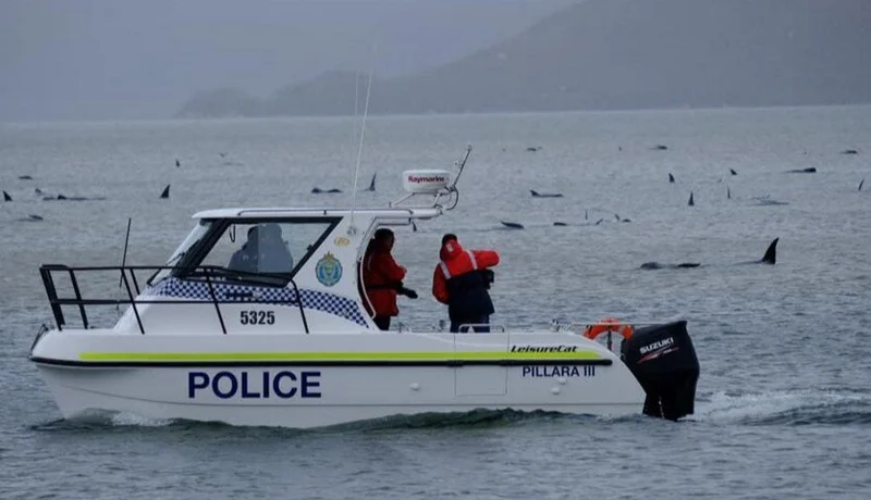 Австралия спасла 25 летящих на мель китов, спасательные работы продолжаются Спасателям пришлось залезть в ледяную воду Новости 14 585