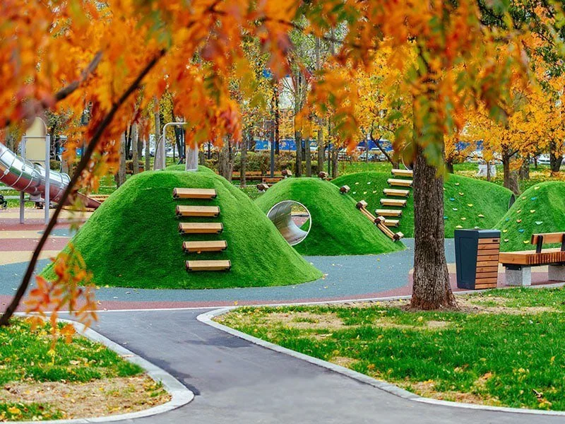 В одном из районов Москвы появилась норка хоббитов и десятиметровая горка Игровая зона в местном сквере стала настоящим хитом. Новости 7 596