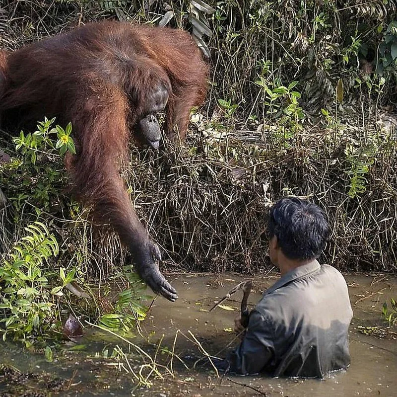 Орангутан пришел на помощь человеку Мир природы никогда не перестает удивлять нас, и эта трогательная встреча между орангутаном и человеком на Борнео растопила сердца во всем мире Новости 14 493