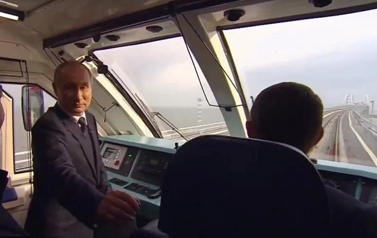 Владимир Путин из Керчи в Тамань проехался в кабине машиниста - видео Перед открытием железнодорожной части Крымского моста глава государства лично проехал по этому пути. Новости 18 567