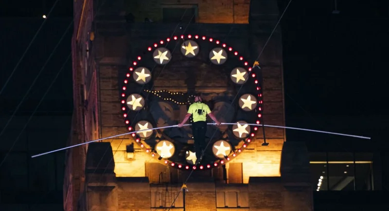 Леденящее кровь представление в Нью-Йорке Брат и сестра канатоходцы показали невероятный трюк над площадью Таймс-сквер. Новости 16 083