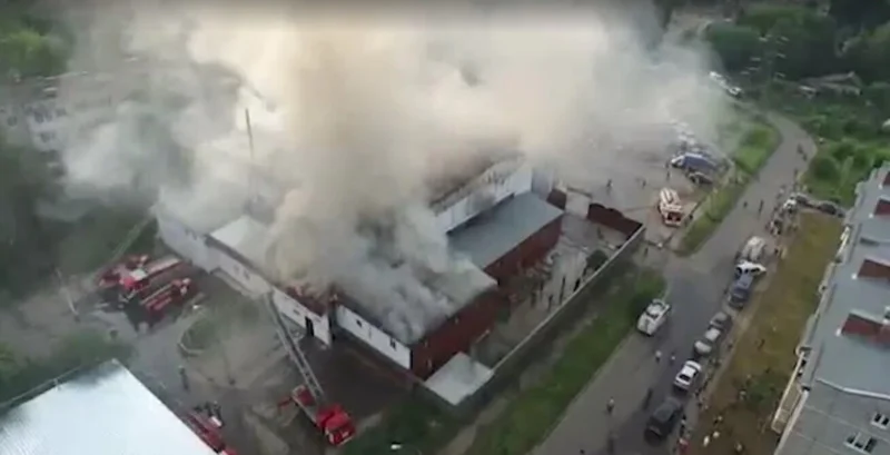 Крупный пожар в Тульской области В городе Щекино Тульской области горел торговый центр. Новости 10 843